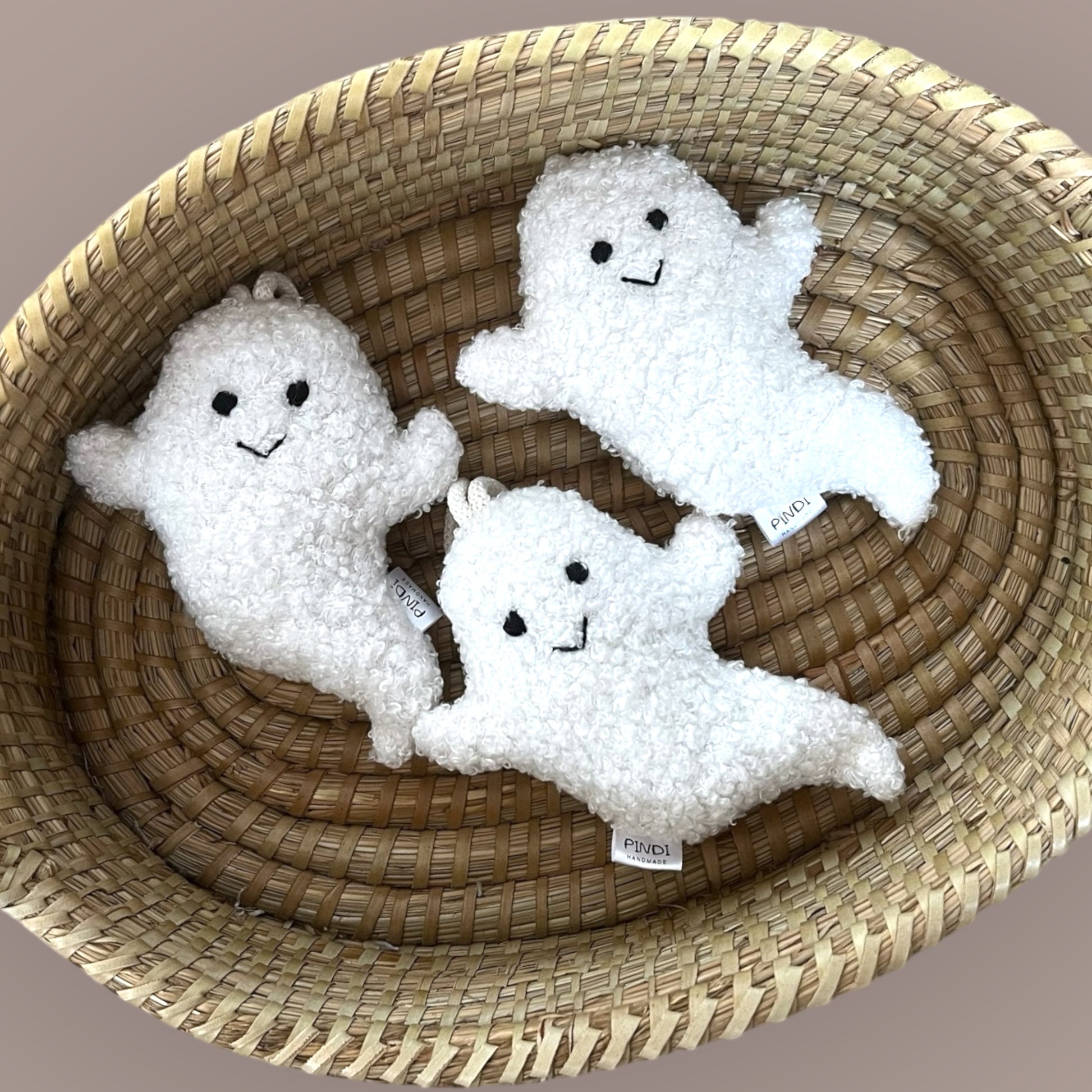 Aranyos szellem figura puha buklé anyagból - babatornáztatóra akasztható vagy cumitartóként is használhatjátok.